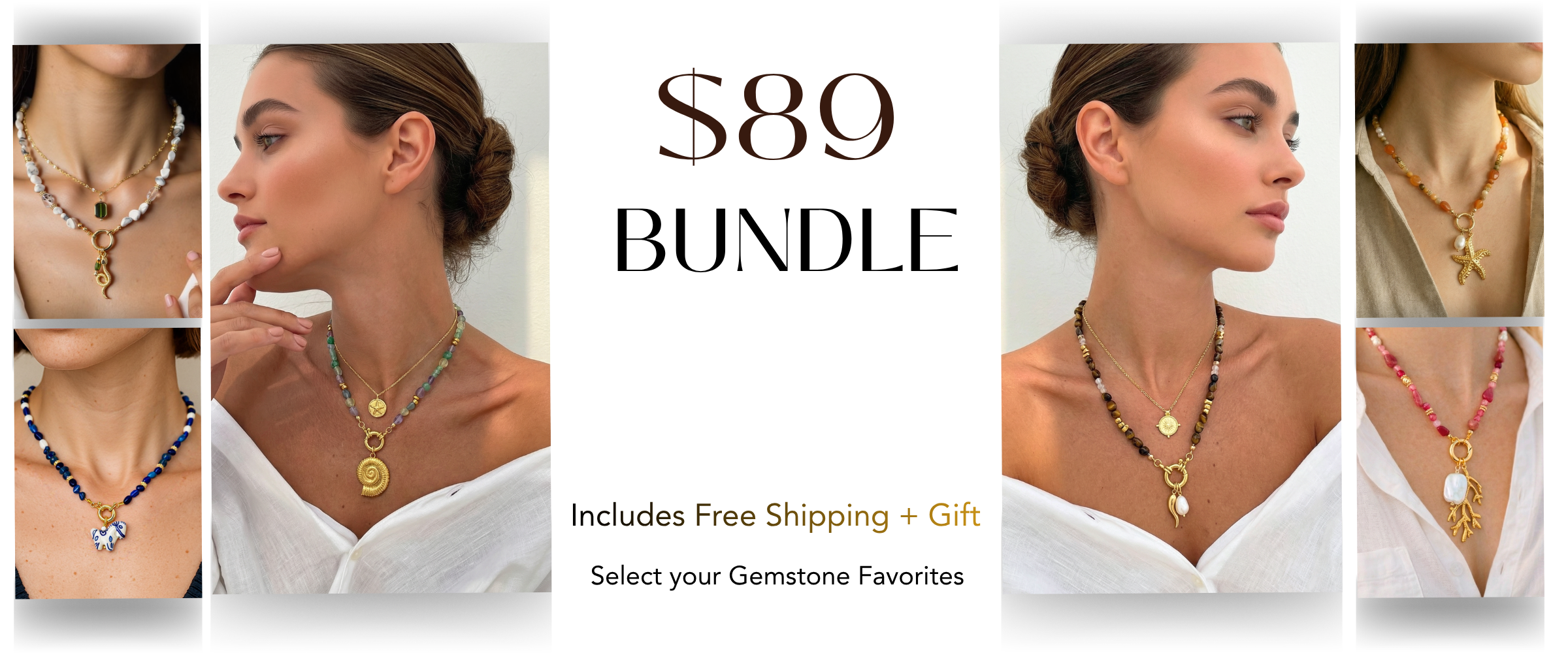 Monthly Signature Set: Natural Stone Necklace with 2 Custom Pendants