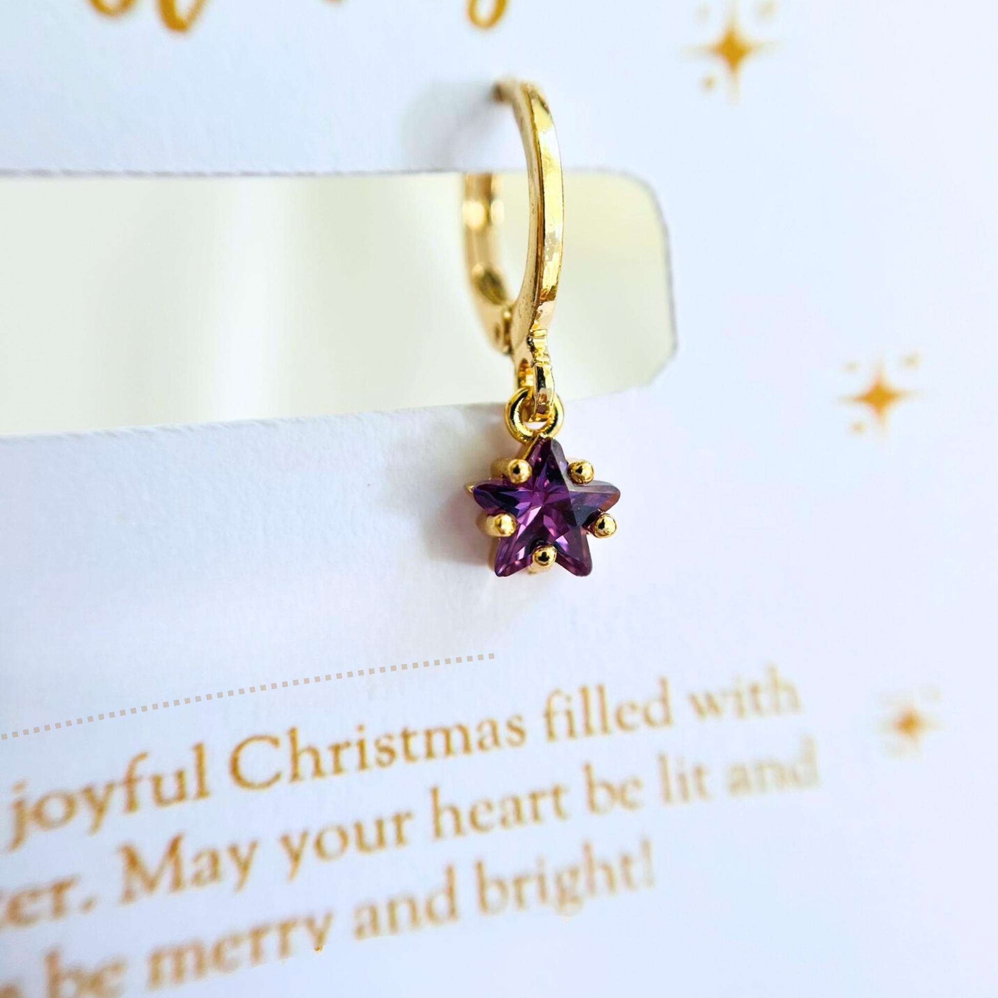 Birthstone Star Earrings with Gold Christmas Card - Jan to Dec - Personalized Gift