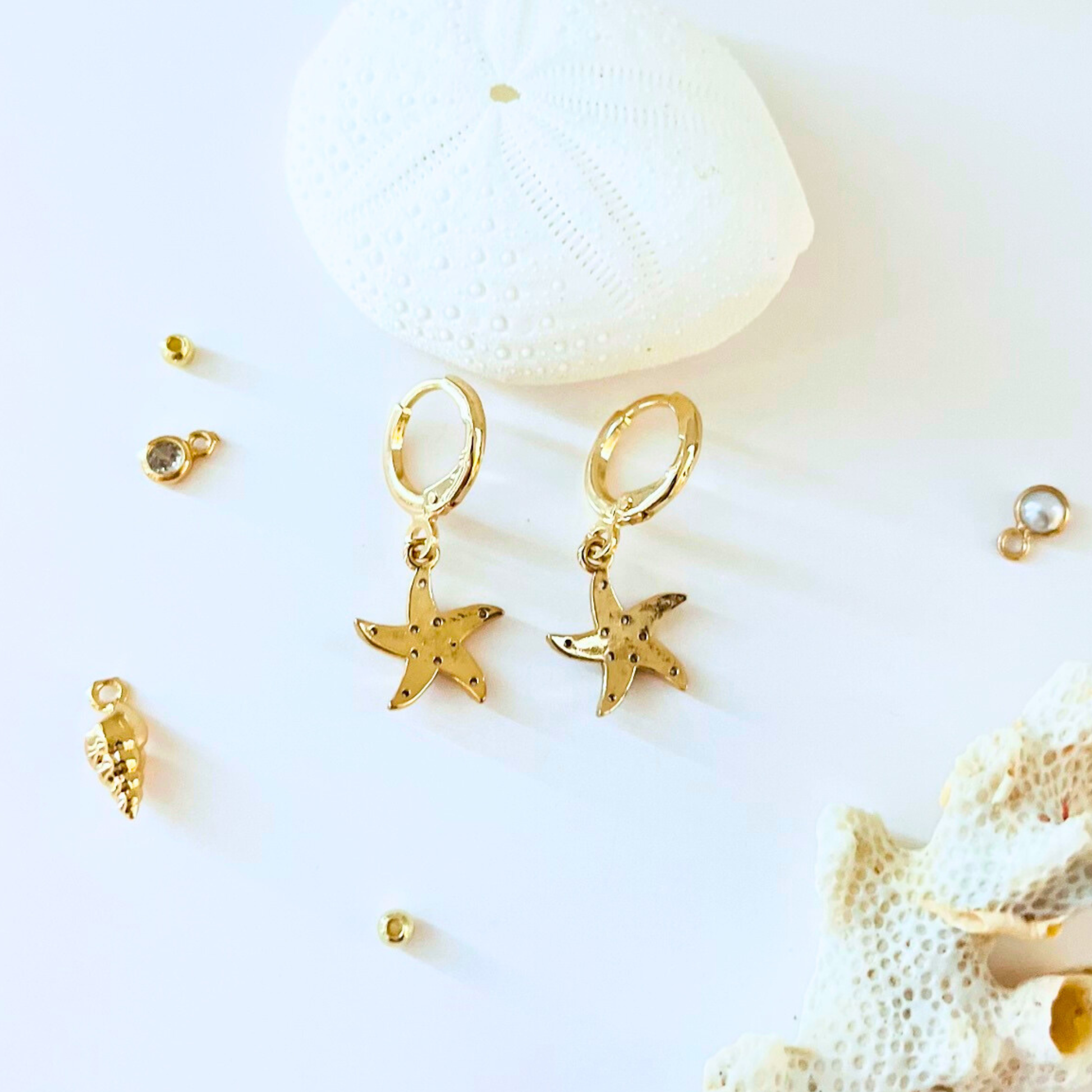 CZ Starfish Gold Plated Huggie Hoop Earrings - Minimalist Beach Jewellery