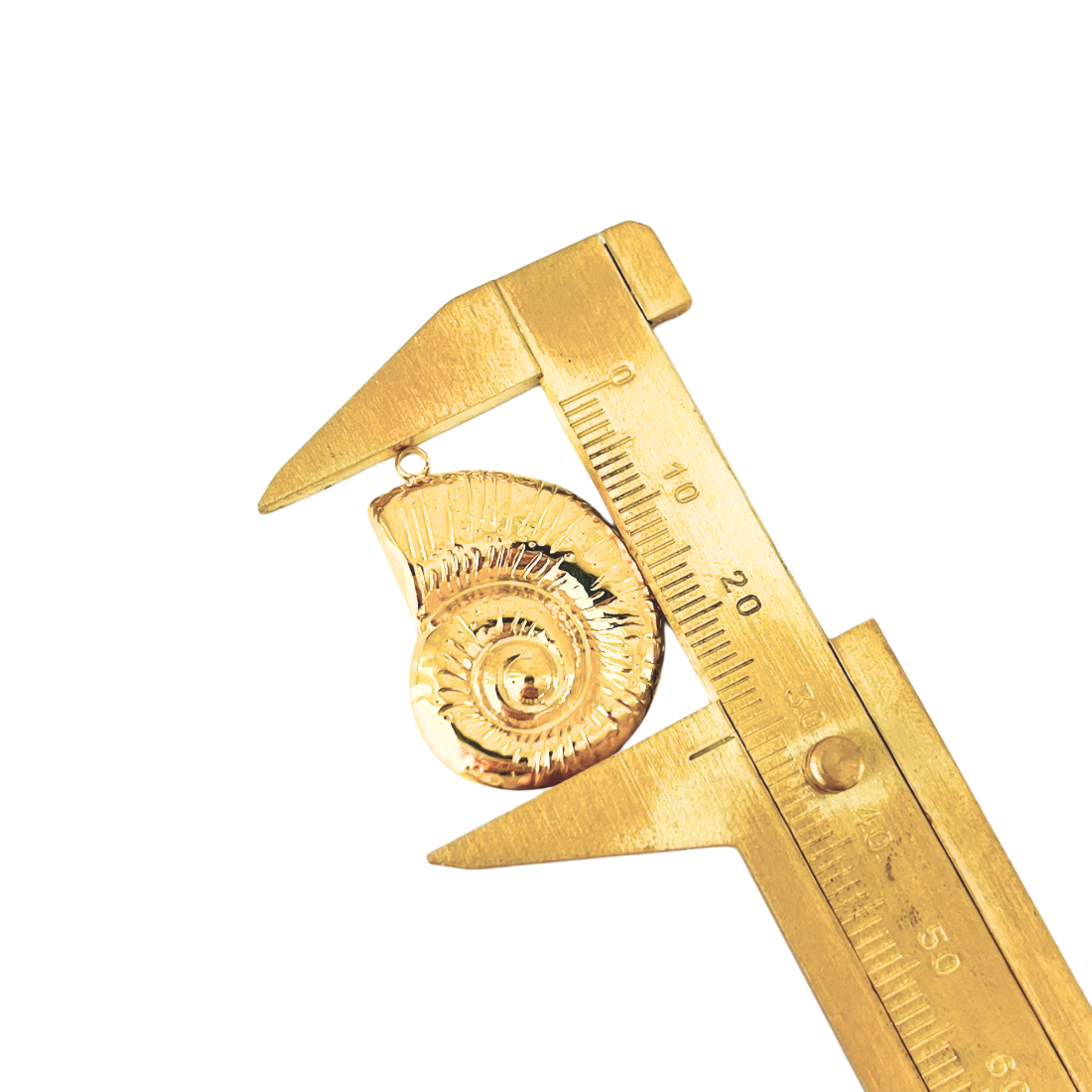 - Design: Gold nautilus shell charm pendant with ocean treasures
