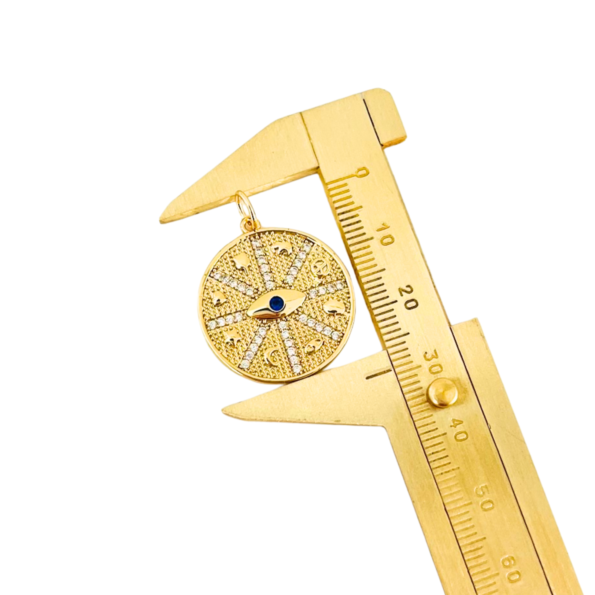 - Design: Guardian evil eye round pendant with symbols and CZ accents