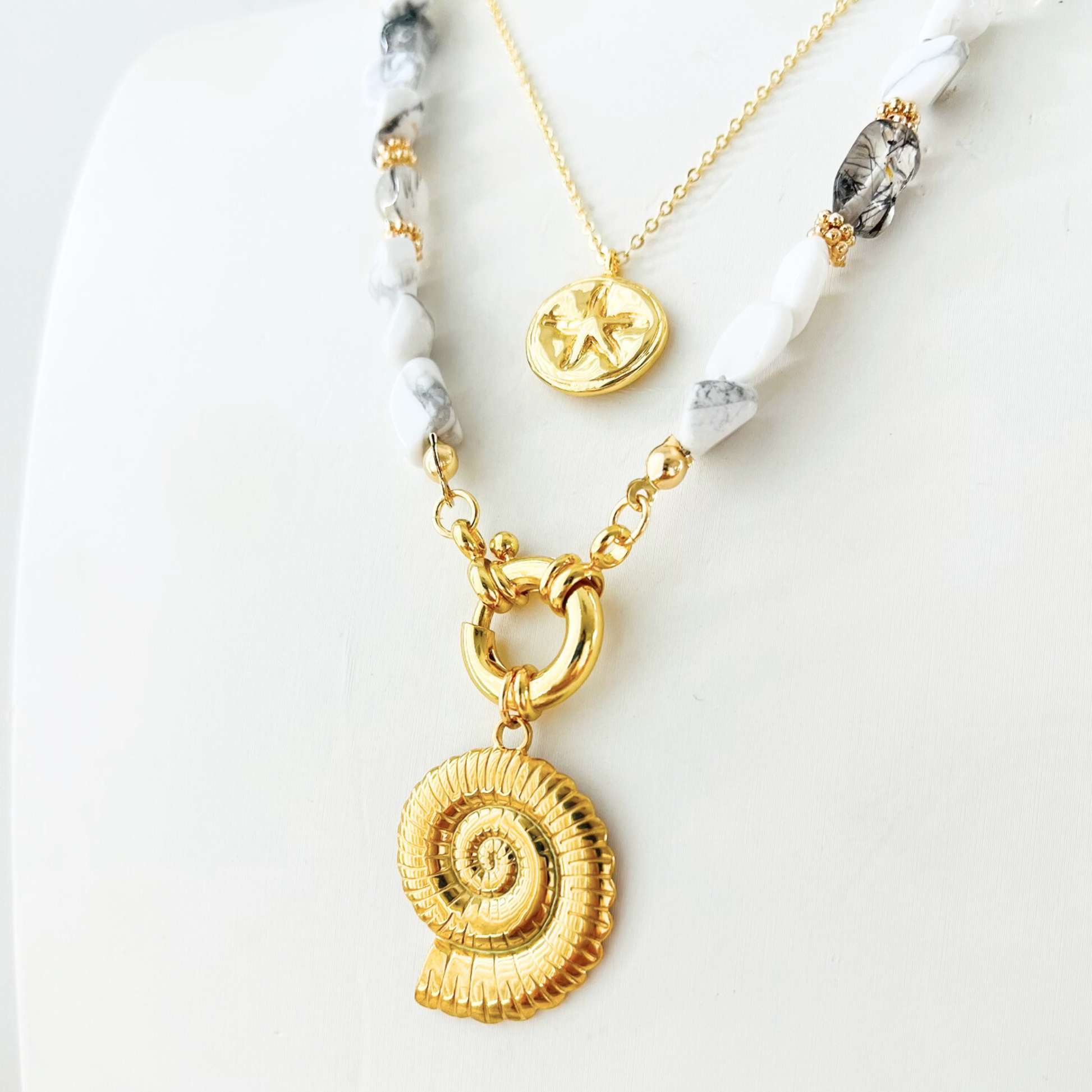 Add a piece of the deep sea to your collection with our Nautilus Shell Charm. This 14K gold plated pendant features beautiful ribbed stripe detailing, capturing the natural elegance of the nautilus shell. Designed for versatility, it features an interchangeable clasp, allowing you to easily clip it onto our gemstone necklaces or swap it between your favourite chains. It’s a timeless ocean treasure, hand-selected to ensure high-quality detail and a polished finish.
