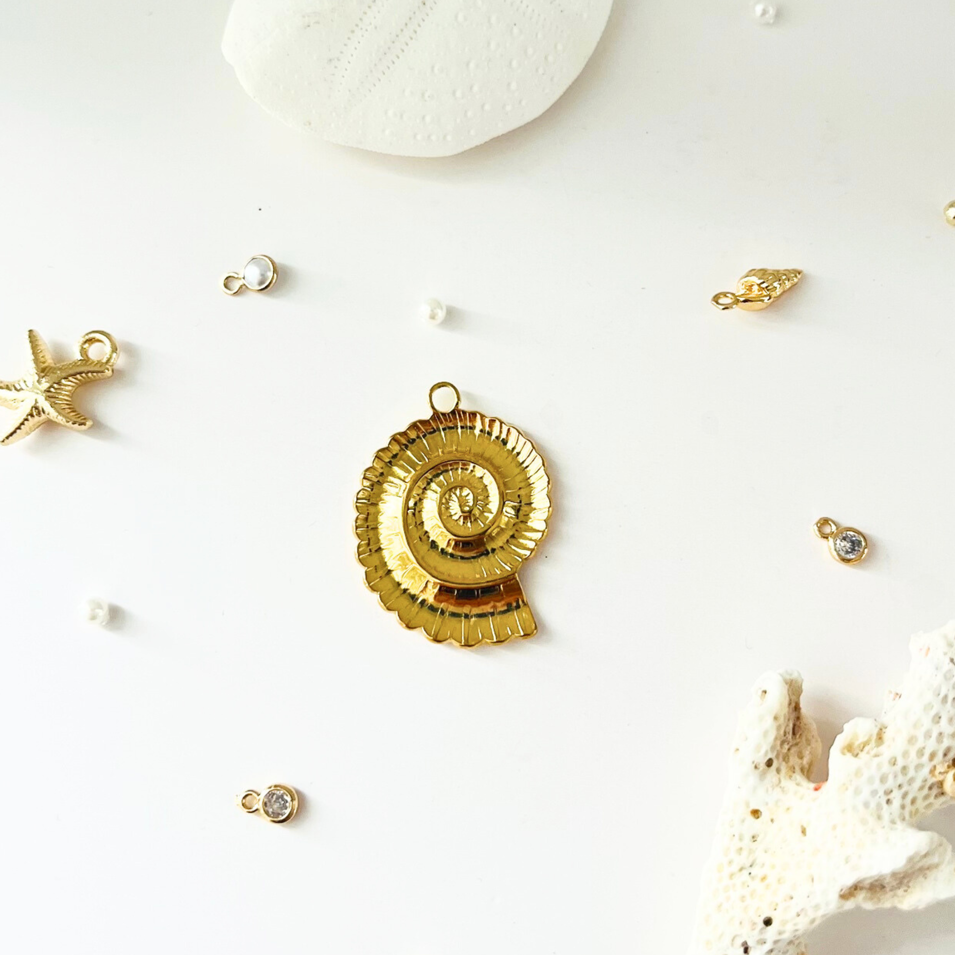 Ocean Treasures | 14K Gold Plated Nautilus Shell Charm | Interchangeable Pendant